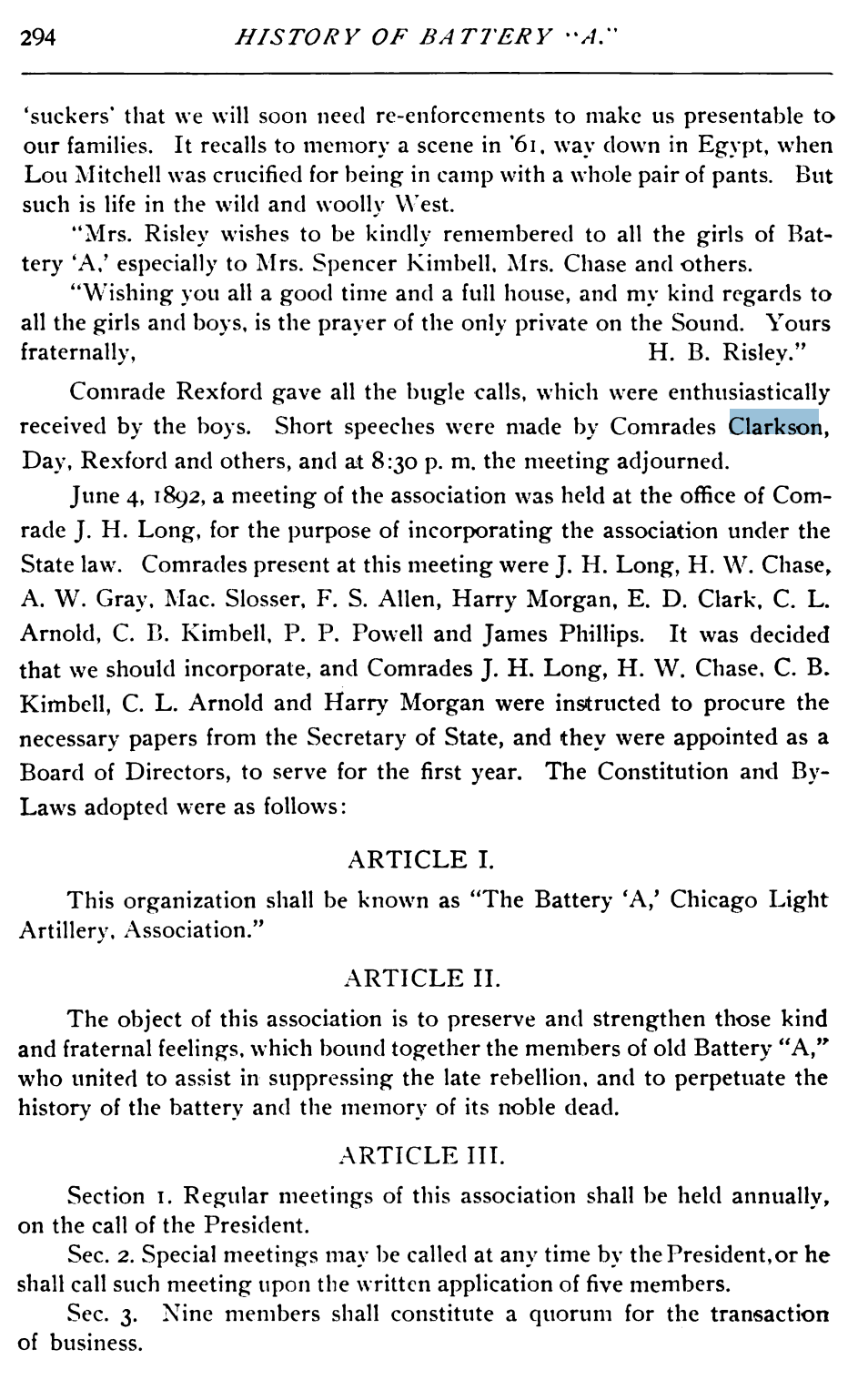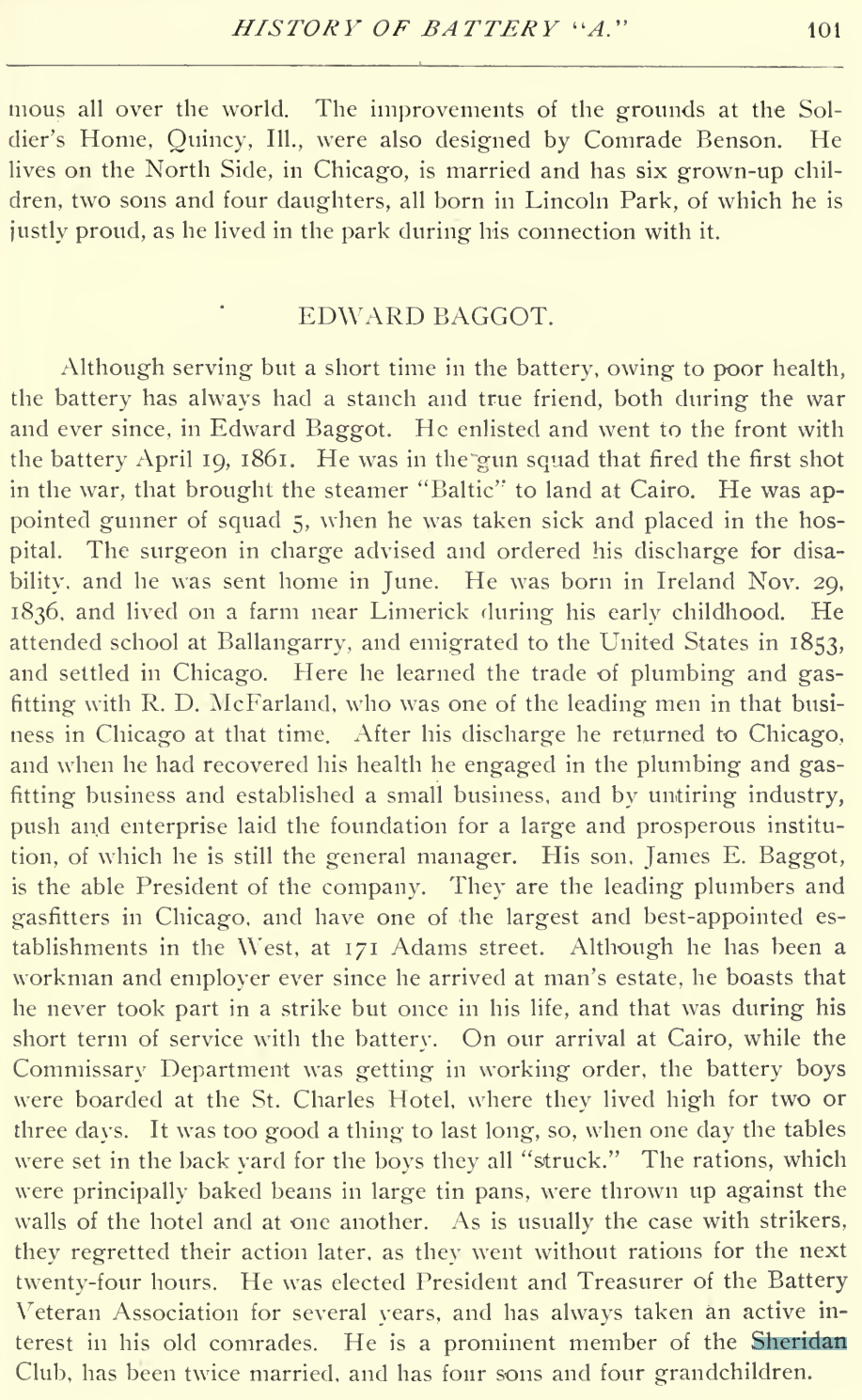 History of Battery “A,” First Illinois Light Artillery Volunteers