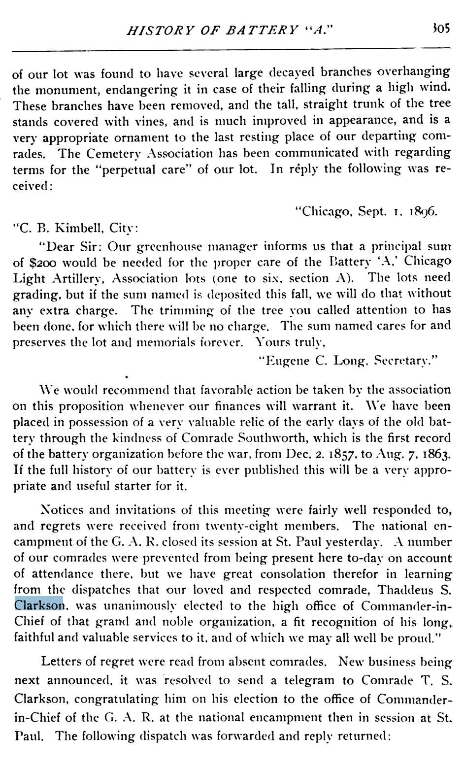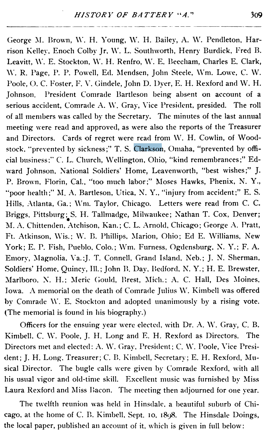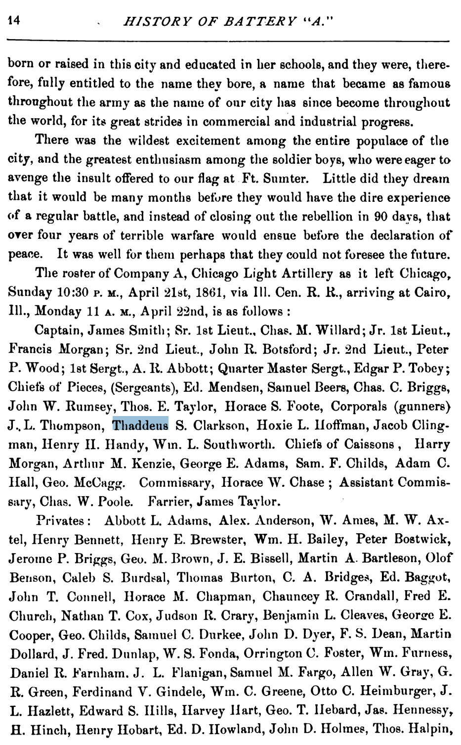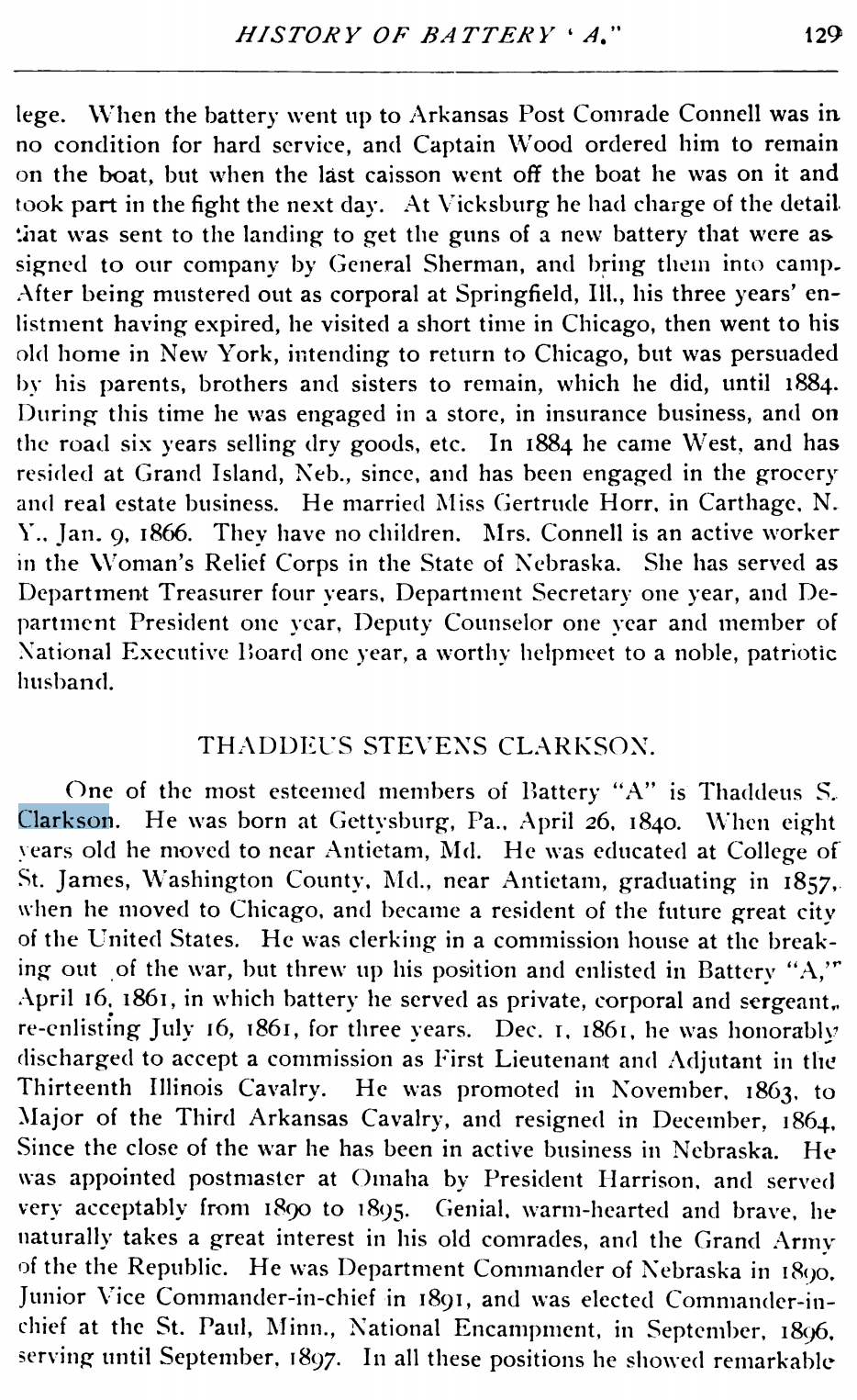 - Thaddeus Stevens Clarkson (1840 – 1915) Was 21 when he joined the Battery A army after Abraham Lincoln asked for 75,000 military for the civil war.