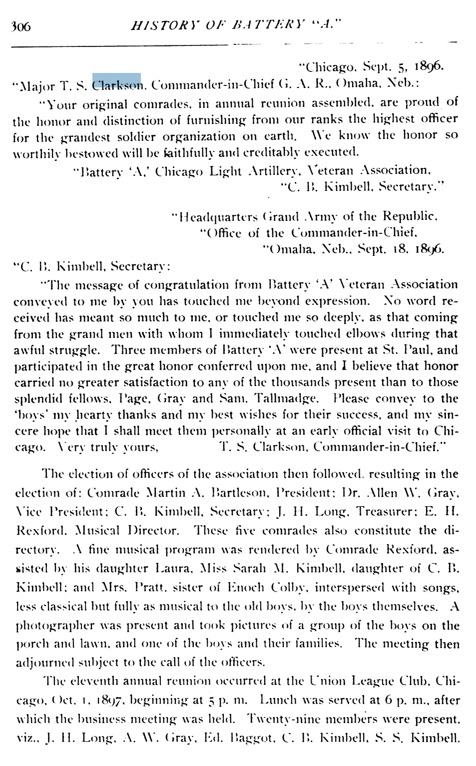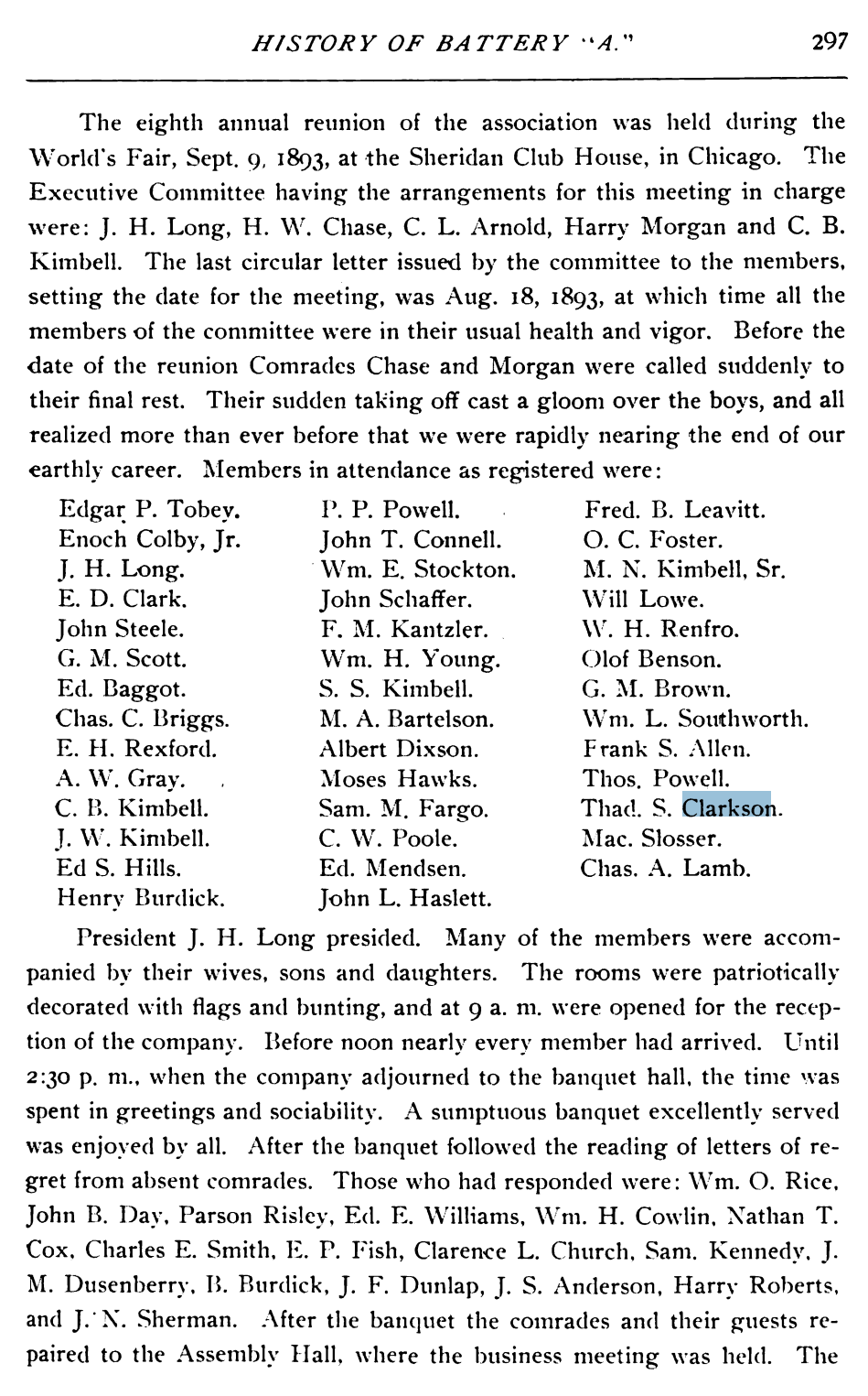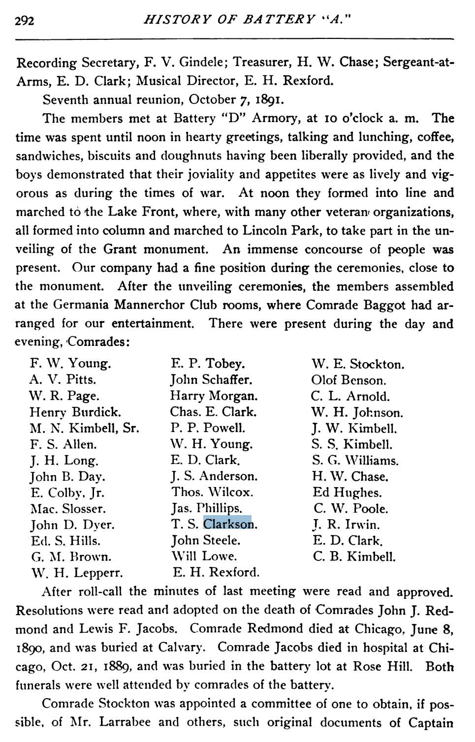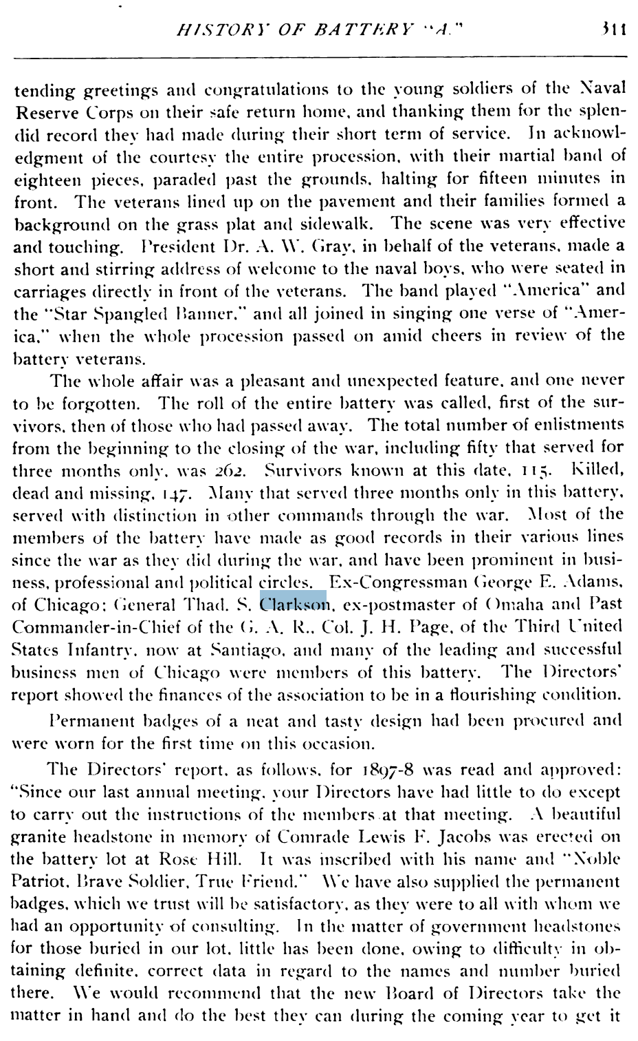 - Thaddeus Stevens Clarkson (1840 – 1915) Was 21 when he joined the Battery A army after Abraham Lincoln asked for 75,000 military for the civil war.