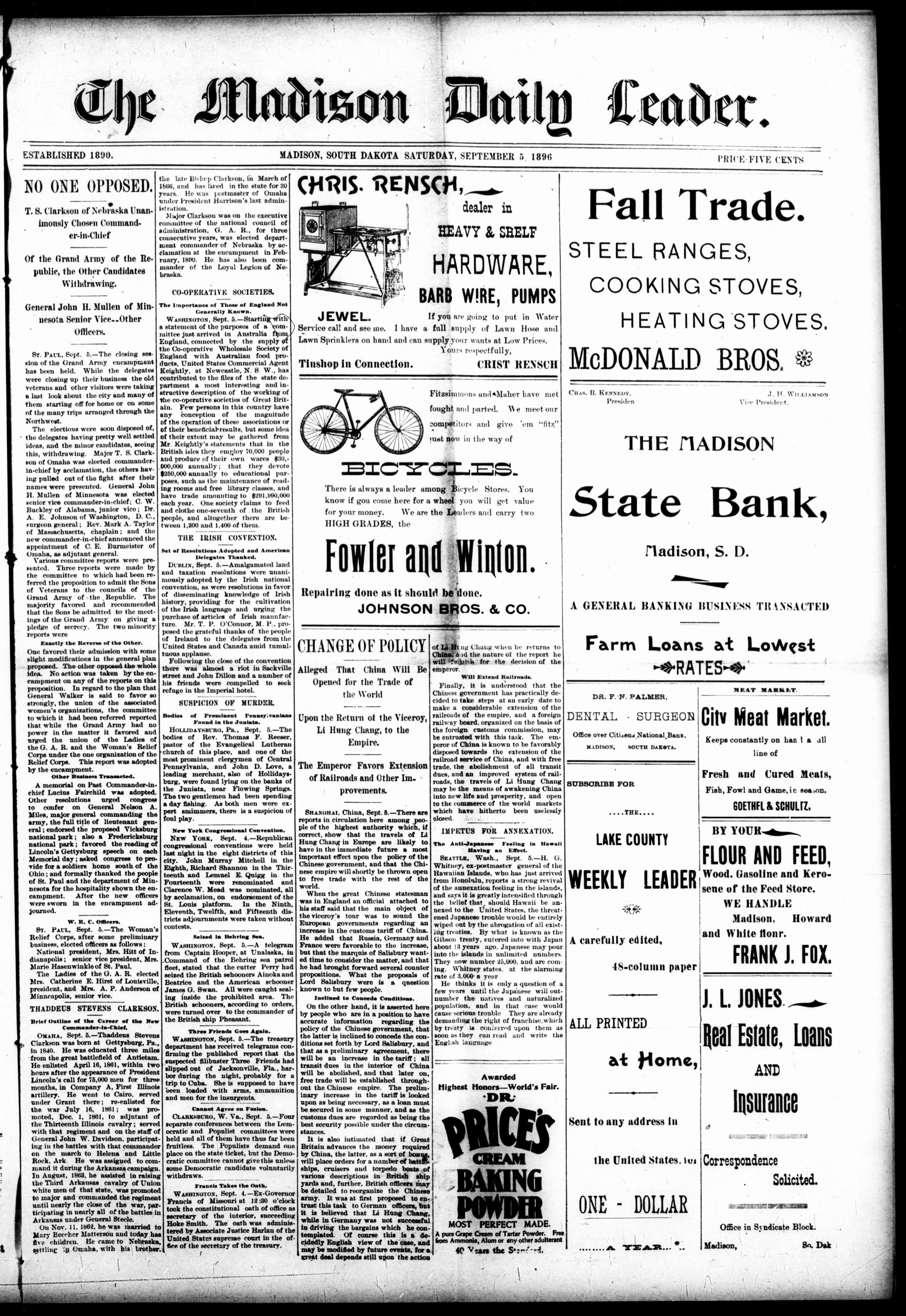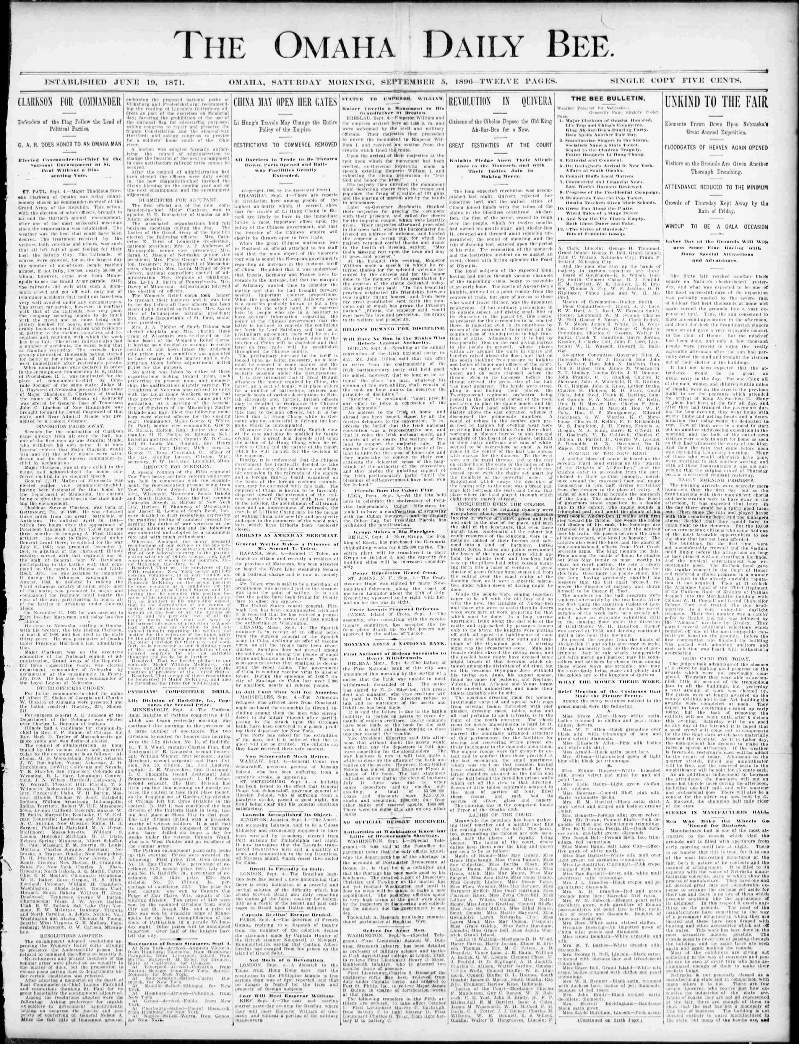 The Rand McNally Building (1889-1911), in Chicago, was designed by Burnham and Root. The offices of the Columbian Exposition, Chicago—In the Designing Room, Bureau of Construction – Rand McNally Building. The offices of The Knights of Columbus (Club: Sheridan) was located in the same building during the same time as the date of the Columbian Exposition and 8th Annual Reunion of The Battery “A” Volunteers. Thaddeus Stevens Clarkson was present at this meeting on September 9, 1893. 5 years later Thaddeus Stevens Clarkson was elected May 23, 1898 as general manager of the Trans-Mississippi International Exposition, which was a world’s fair held in Omaha, Nebraska from June 1 to November 1 of 1898. Its goal was to showcase the development of the entire West, stretching from the Mississippi River to the Pacific Coast.