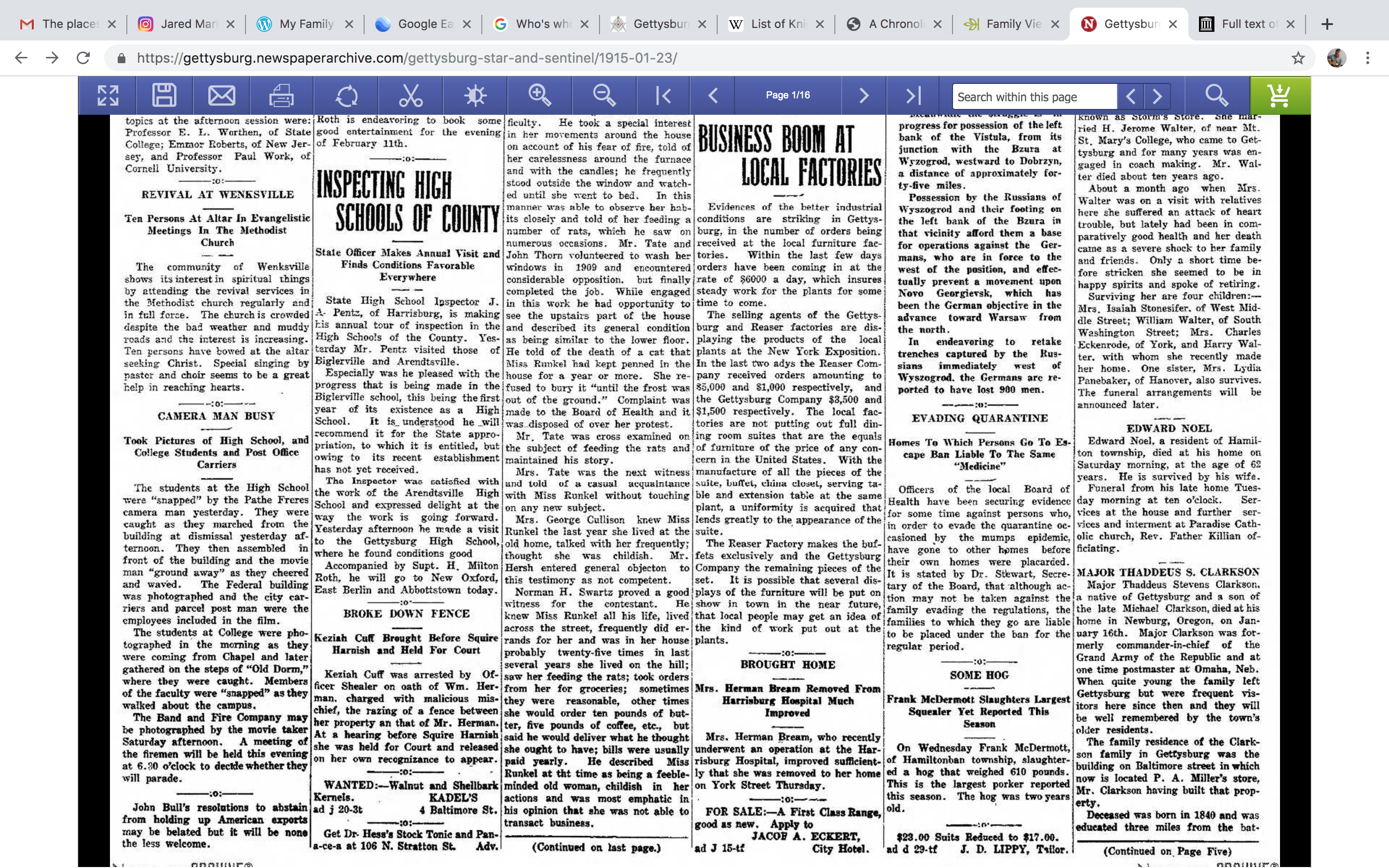 Thaddeus Stevens Clarkson’s Grand Father, Rev. Joseph Clarkson was cousins with the 16th U.S. President Abraham Lincoln through his Mother Mary Flower Clarkson’s Great Grand Father, Enoch Flower & His Wife Rebecca Barnard.